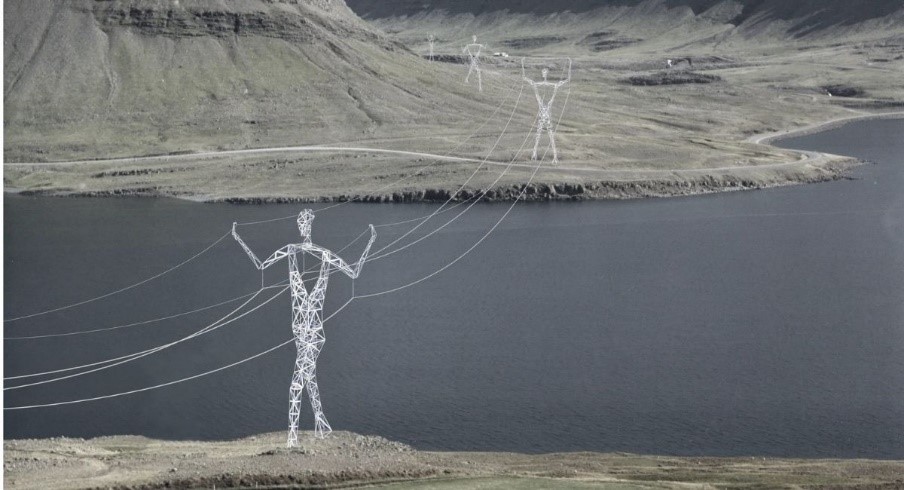 Os arquitetos completam que, desta forma, as figuras se tornam parte da paisagem, “servindo às pessoas e silenciosamente transportando eletricidade pelo terreno, dia e noite, faça sol ou neve”.